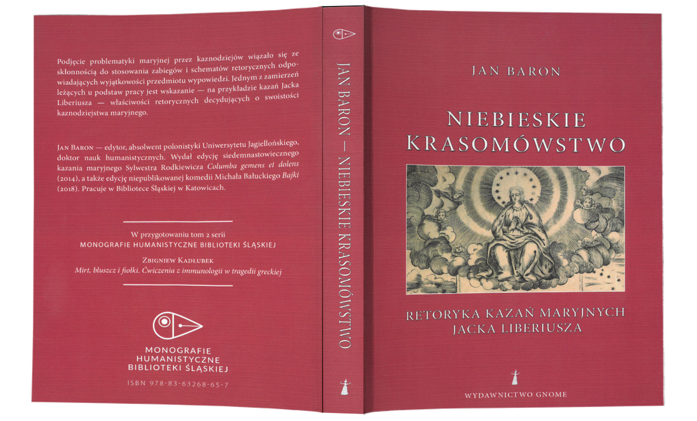Publikacja poświęcona jest kazaniom maryjnym Jacka Liberiusza (1599–1673) ze zbiorów „Gospodyni nieba i ziemie Naświętsza Panna” (1650) oraz „Gwiazda morska Naświętsza Panna” (1670). Pobożność maryjna to jeden z najbardziej wyrazistych nurtów polskiej religijności epoki potrydenckiej. Podjęcie tejże tematyki przez kaznodziejów wiązało się ze skłonnością do stosowania zabiegów i schematów retorycznych odpowiadających wyjątkowości przedmiotu wypowiedzi. Jan Baron, wprowadzając czytelnika w świat retoryki barokowej homiletyki na przykładzie kazań Jacka Liberiusza, pokazuje, jakie środki stylistyczne używali duchowni, aby oddać wyjątkowość kultu Maryi.