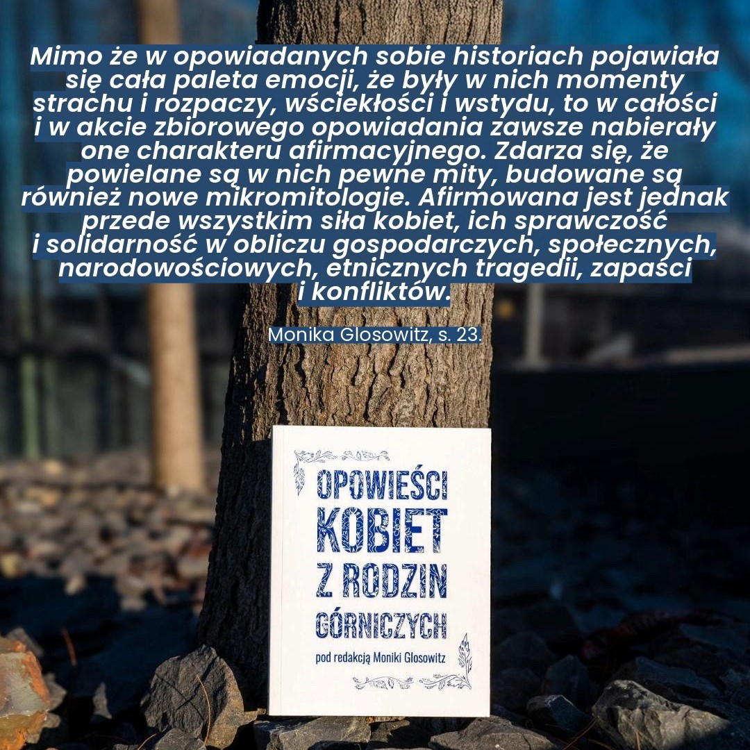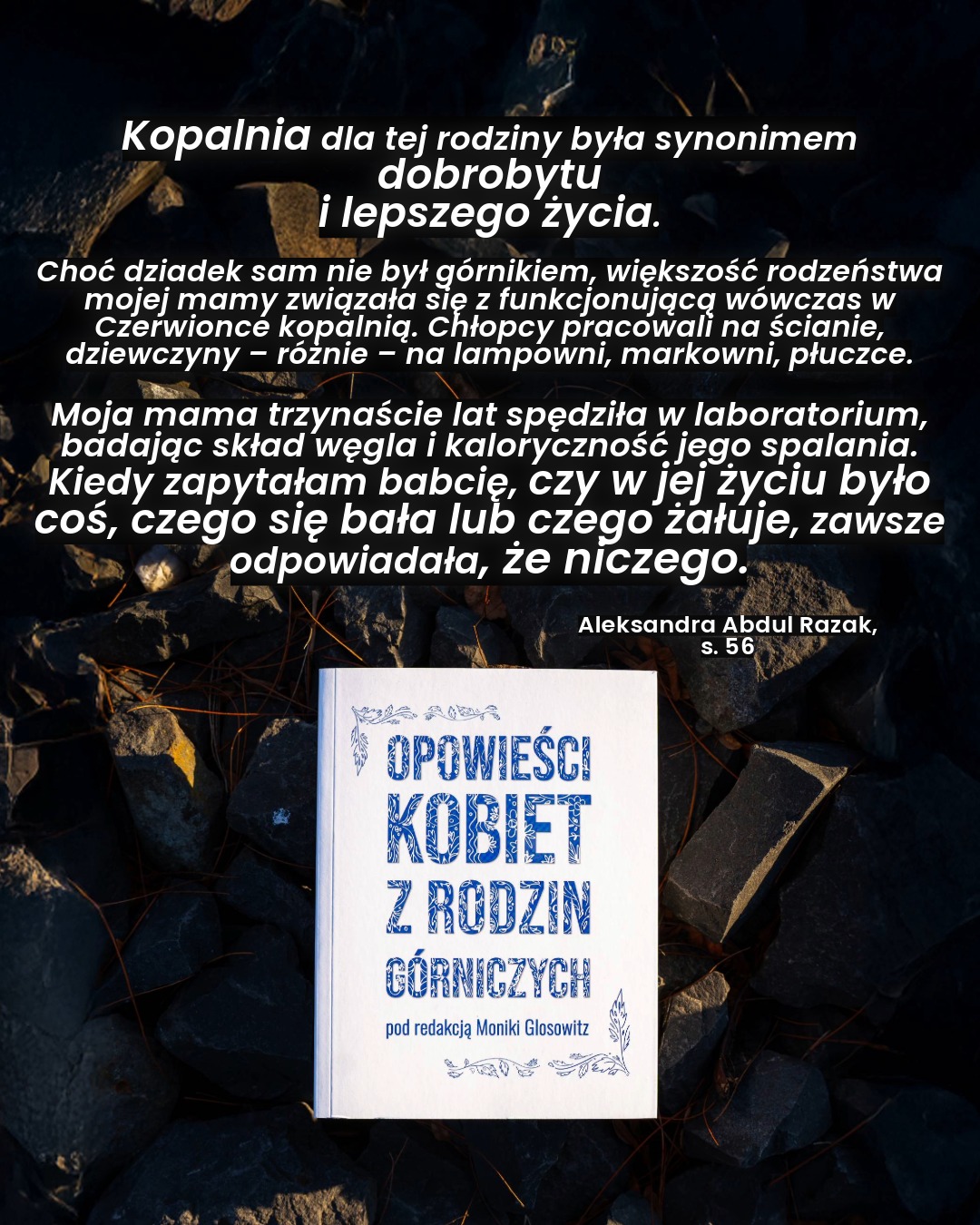 Z opowieści i reminiscencji wypływa duma, siła, godność oraz solidarność płciowa kobiet, które zarówno pracowały w kopalniach, jak i tych, które nie uczestniczyły w życiu zawodowym. Zgromadzone w monografii zbiorowej teksty wpisują się w odzyskiwanie pomijanych lub wyciszanych głosów tych kobiet, które często uległy marginalizacji w kontekście pamięci kulturowej. W efekcie, omawiana książka wpisuje się zatem we współczesną herstorię kobiet z rodzin górniczych, które odgrywały kluczową rolę w kształtowaniu społeczności oraz w procesach zachowywania i przemilczania wspólnych doświadczeń, co uzupełnia istniejącą lukę w historiografii społecznej Górnego Śląska. (…)
