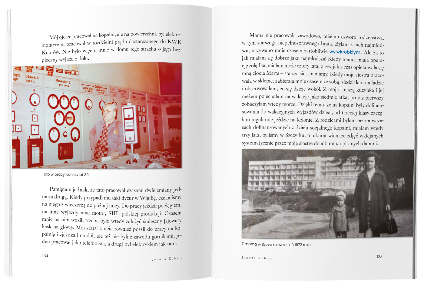 Kiedy byłam bajtlem, nie zdawałam sobie sprawy, jak bardzo nasze życie, rodzin górniczych, różni się od życia innych rodzin. W końcu obracałam się głównie w towarzystwie dzieci górników, więc towarzyszyły nam te same emocje, mieliśmy podobne doświadczenia. Przygotowując się do sesji zdjęciowych, czytałam opowieści napisane przez bohaterki projektu z wypiekami na twarzy. W wielu tych historiach odnajdowałam skrawki swojej, ale też mojej mamy i babci, historii. Wróciły wspomnienia… Nazod byłach w dōma! Jestem niezwykle wdzięczna, że mogłam wziąć udział w tym projekcie, w ramach którego w końcu to kobiety opowiadają o życiu w cieniu gruby.Karolina Jonderko